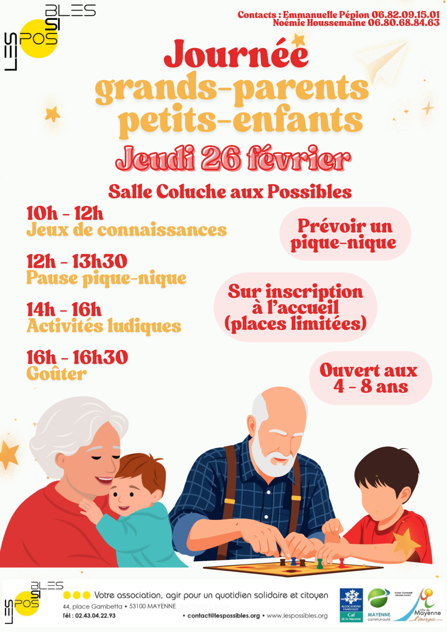 •Actualités Actualité • Journée grands-parents petits-enfants, le 26... • Journée grands-parents petits-enfants, le 26 février Thématique Mayenne communauté Nos actions Entreprendre A votre service AUTRES ACTUALITÉS DU MOMENT AUTRES ACTUALITÉS À CONSULTER dans {{ p.custom_fields.thematique_actualite[0] }}