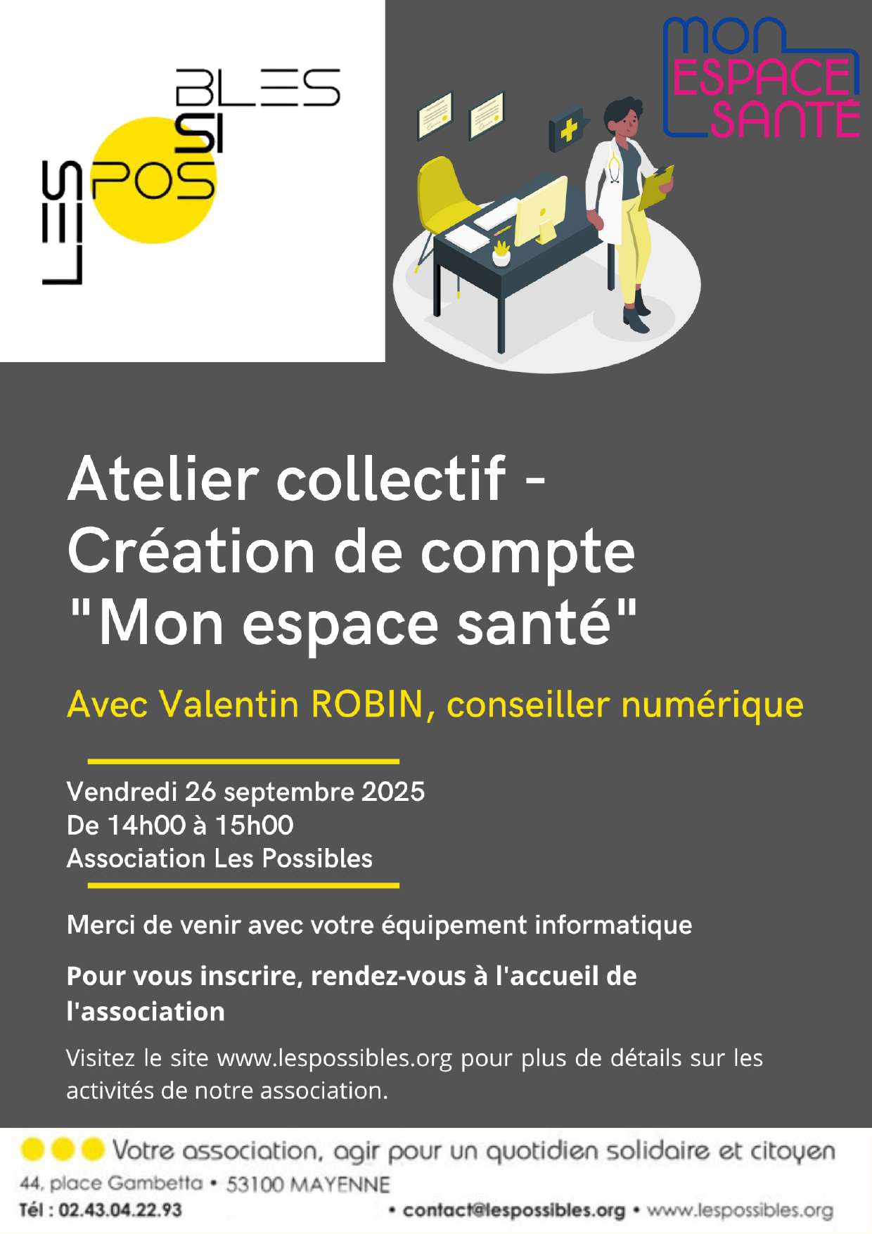 Atelier numérique collectif “Création de... • Atelier numérique collectif “Création de compte Mon espace santé”, le 26 septembre