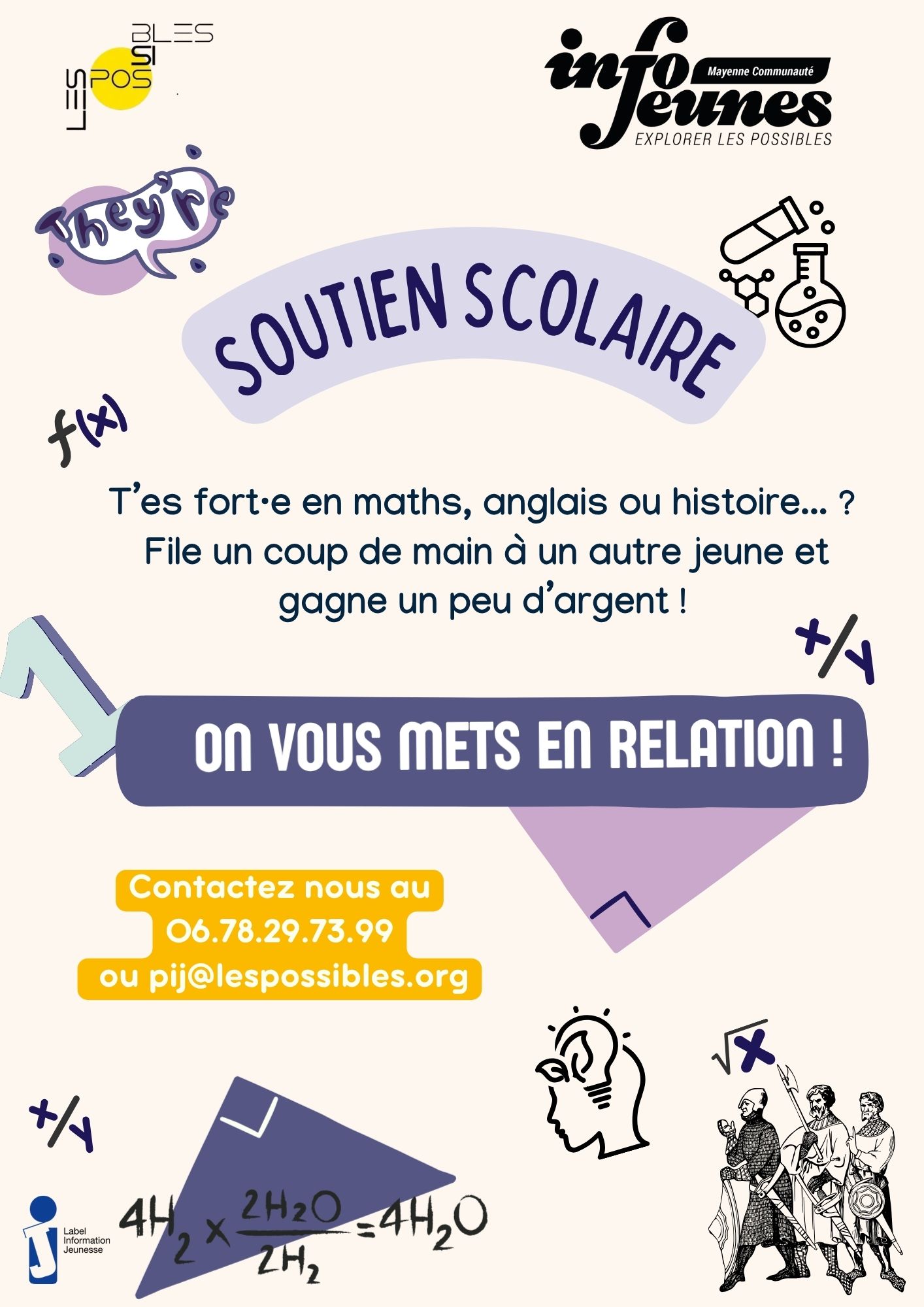 Marie-Hélène Corbeau-Joubin : mh.joubin@lespossibles.org – 06 59 58 86 48CLAS (Contrat Local d’Accompagnement à la Scolarité)