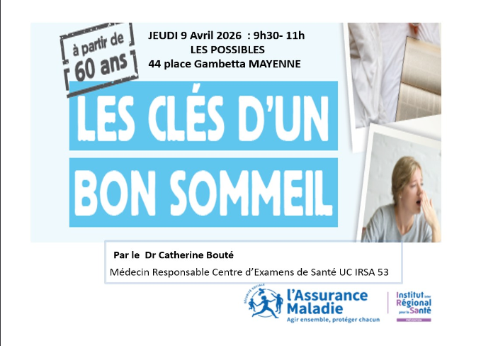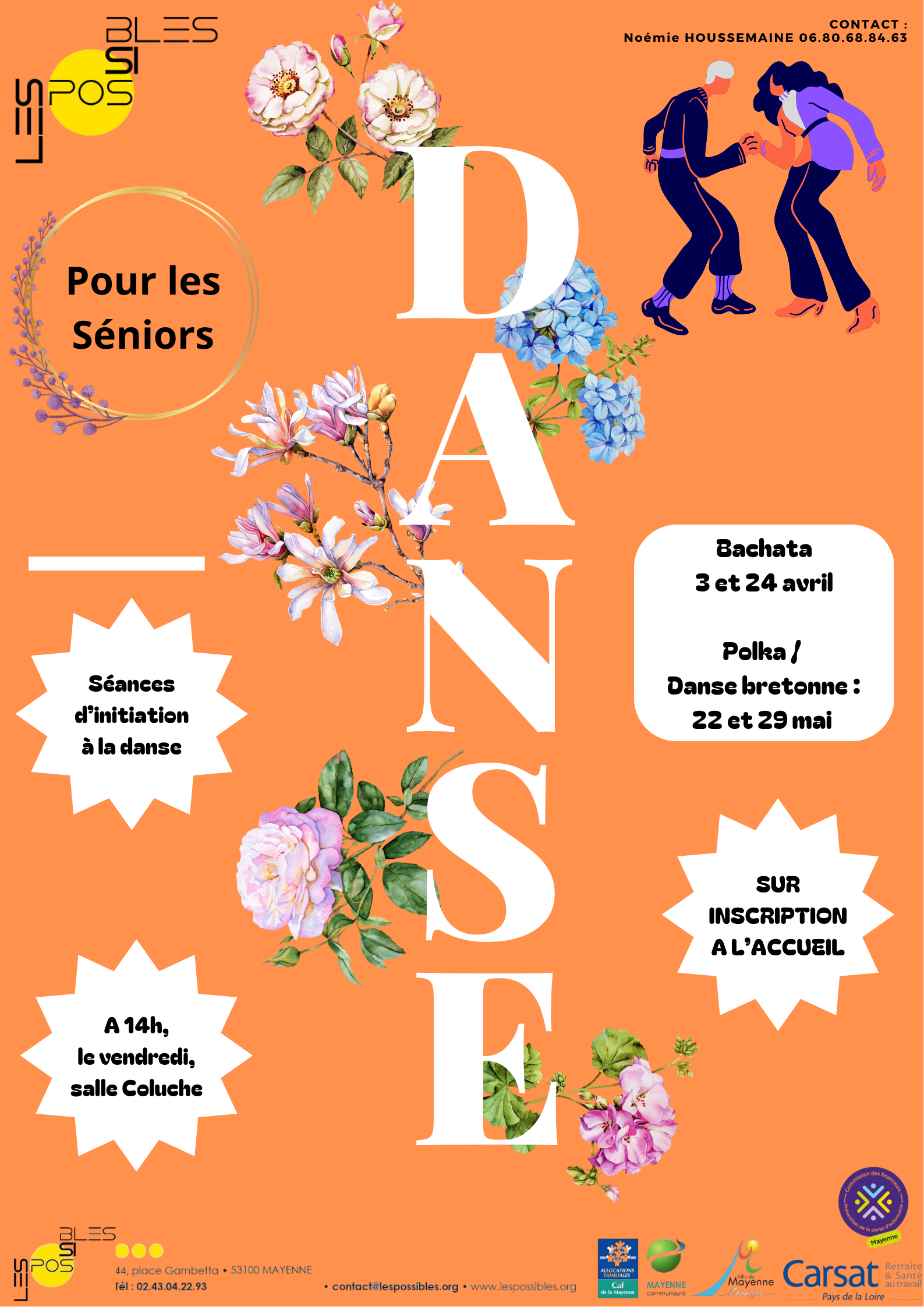 Un axe d’intervention auprès du public senior s’est construit à l’association Les Possibles. Celui-ci répond au projet associatif. Nous ouvrons la parole aux 60 ans et plus, afin de recueillir leurs besoins et attentes sur le territoire de Mayenne. Un questionnaire est mis à disposition “Questionnaire projet senior et bien vieillir” à l’accueil de l’association. N’hésitez pas à venir le remplir. A l’association Les Possibles, quelques projets émergent afin de palier aux problématiques d’isolement et de solitude (goûter et jeux de société, diverses sorties…) Ces projets en rejoignent d’autres, déjà existants, comme “le sport autrement”… Jeudi 9 avril, de 9h30 à 11h En partenariat avec l’IRSA, nous vous proposons de participer à un atelier sur le sommeil. Plusieurs exercices ludiques pour stimuler sa mémoire SUR INSCRIPTION A L’ACCUEIL – Gratuit Mercredis 8 avril, 13 mai et 17 juin Mardi 21 avril (spécial retour dans le passé) à 10h Plusieurs exercices ludiques pour stimuler sa mémoire SUR INSCRIPTION A L’ACCUEIL Des exercices mécaniques, pratiques et simples pour revenir aux sensations du corps quand le mental est trop présent. Améliorer son sommeil, apaiser ses douleurs, évacuer ses tensions, améliorer sa concentration, prendre soin de sa santé mentale et de son corps. « Le groupe pour le lien, le partage et la convivialité » De 11h30 à 12h30, salle Coluche Proposée par Cindy Pauloin, sophrologue Balades sensorielles : RDV 16h30 aux Possibles (Plan d’eau de Gambetta) les 11 mai, 1er, 15 et 29 juin Tarif : 10 € les 15 prestations (10 séances + 5 balades sensorielles) SUR INSCRIPTION A L’ACCUEIL Les difficultés sociales, financières, de santé, impactent l’estime de soi et la confiance en soi. La socio-esthétique consiste à utiliser le soin du bien-être auprès des personnes qui sont face à ces difficultés de la vie, hommes et femmes. Revalorisation de l’image de soi par un travail sur le corps, Faciliter le lâcher prise, la détente et le mieux-être, Améliorer la confiance en soi, Trouver ou retrouver le plaisir à s’occuper de soi et à prendre du temps pour soi, Favoriser les échanges et le lien social. Jeudi 9 avril De 13h30 à 15h30, salle Coluche Proposée par Eve Courteau, socio-esthéticienne SUR INSCRIPTION A L’ACCUEIL – Engagement sur toutes les séances Tarif : 10 € les 6 séances Une activité physique adaptée, ludique et conviviale pour les jeunes retraités et les seniors, animée par un professionnel qualifié. POURQUOI PARTICIPER ? ✔ Redécouvrir le plaisir du mouvement à son rythme ✔ Préserver sa santé physique et mentale ✔ Partager des moments de convivialité ✔ Découvrir de nouvelles pratiques sportives ✔ Être accompagné.e dans une ambiance sécurisante et bienveillante Le vendredi (sauf pendant les vacances scolaires) Un groupe, de 10h à 11h avec Stéphane BARRE de l’UFOLEP Un groupe, de 11h à 12h avec Bernard GUILLOT, adhérent des Possibles Tarif : 28 € (licence sportive) + adhésion à l’association Prévoir tenue adaptée, eau et bonne humeur ! SUR INSCRIPTION A L’ACCUEIL 5 séances d’initiation par danse Envie de bouger en douceur, de faire des rencontres et de passer un bon moment ? Ces séances, animées avec douceur et bonne humeur, vous permettront de garder la forme, de stimuler votre mémoire et surtout de partager des instants joyeux avec d’autres participants. Venez danser, échanger, rire… et créer de beaux souvenirs ensemble ! De 14h à 16h, salle Coluche SUR INSCRIPTION A L’ACCUEIL Gratuit Contact : Noémie HOUSSEMAINE : 06.80.68.84.63 – n.houssemaine@lespossibles.org· Atelier sur le sommeil